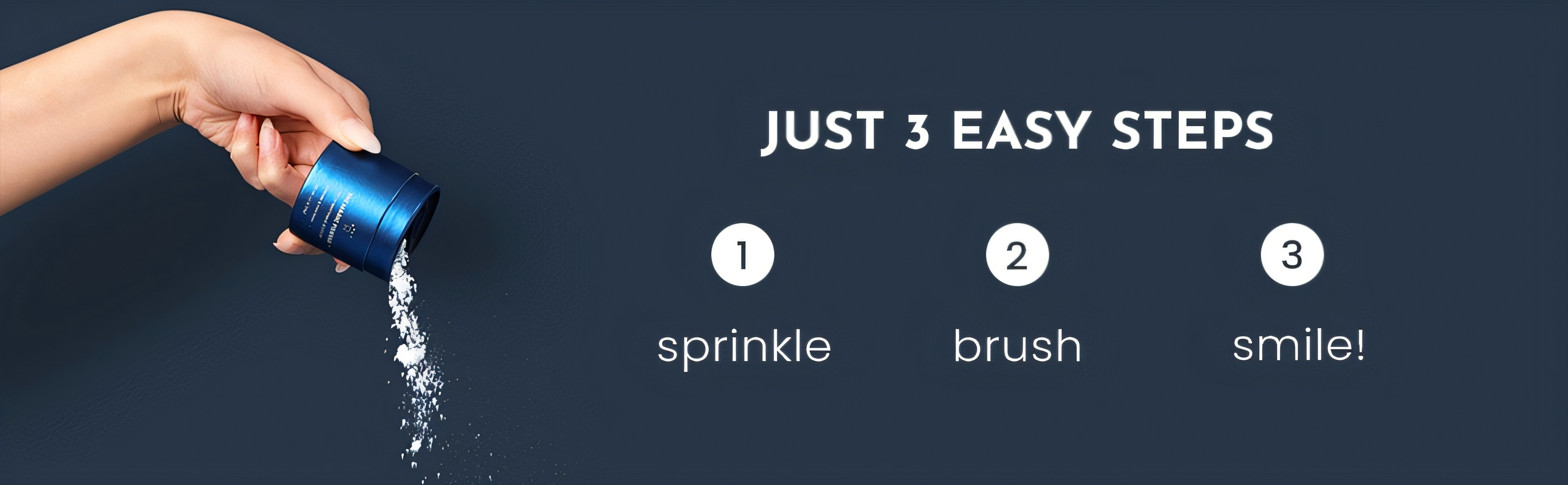 This is a teeth whitening booster powder designed to be sprinkled on your toothpaste or directly on your brush to enhance whitening. It uses gentle, enamel-friendly ingredients to lift surface stains from coffee, tea, wine, etc., while strengthening teeth and freshening breath — all without peroxide or harsh chemicals.